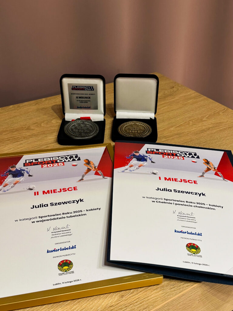 1. miejsce – Sportowiec Roku (kobiety) w Chełmie i powiecie chełmskim. 2. miejsce – Sportowiec Roku (kobiety) w całym województwie lubelskim. Julia, gratulujemy tak wspaniałej formy i świetnego wyniku w regionie!